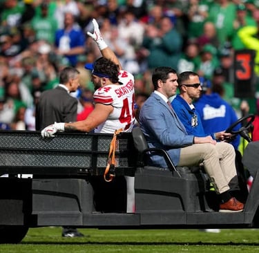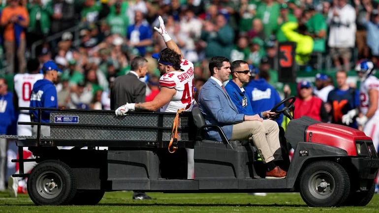 New York Giants rookie running back Cam Skattebo suffered a dislocated ankle during Sunday’s Week 8 matchup against the Philadelphia Eagles, the team confirmed. He was carted off the field with an air cast on his left leg and later taken to a nearby hospital for further evaluation. The injury occurred with 8:07 remaining in the first half when Skattebo was rolled up on during a tackle.